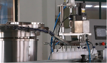 Sistema automático de clasificación, alimentación y tapado de tapas para tapas de diferentes tamaños.